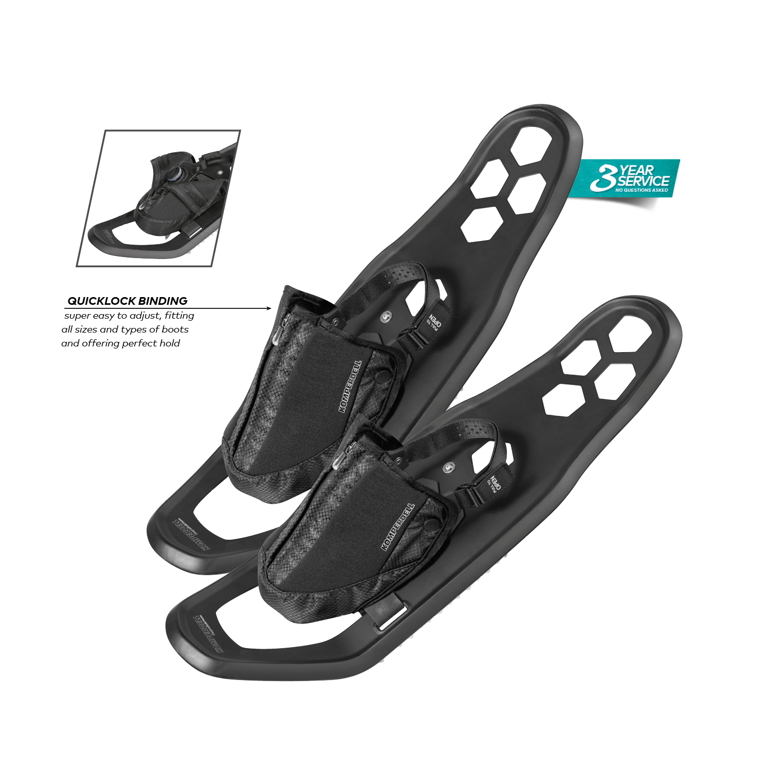 Separate Easy Step-in Bindung für unsere Schneeschuhe. Garantiert einen einfachen Einstieg, passend für jede Schuhgröße und normales Outdoor Schuhwerk. Besonders guter Halt und angenehm zu tragen.